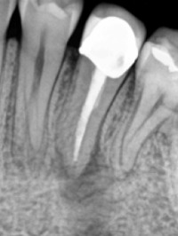 Fig 3a. Periapical radiograph of tooth #20. There is an associated radiolucency at the apex of this root-filled tooth. (1)