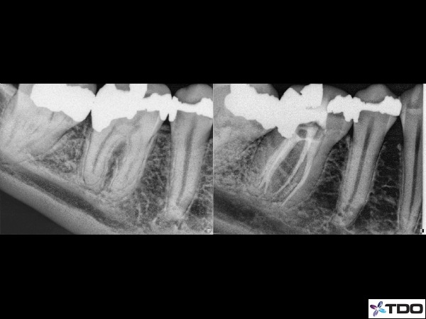 Figure 3: Here is another case from Adam Monroe in which more time and another appointment he was able to find 3 distal canals. It would be very difficult to perform this type of careful work in one appointment.